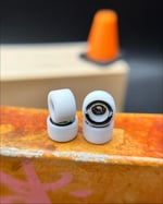 Heather’s pro wheel is a 7.9 x 5.2mm conical wide shape in white F2 with deep sidecut painted black and M and F raised lettering. These wheels also all have shieldless bearings. I love how this pro wheel came together and how Heather put all of her unique wheel preferences into it. Heather has been such a good team rider and has always supported the DGFB brand so well. Congrats Heather!